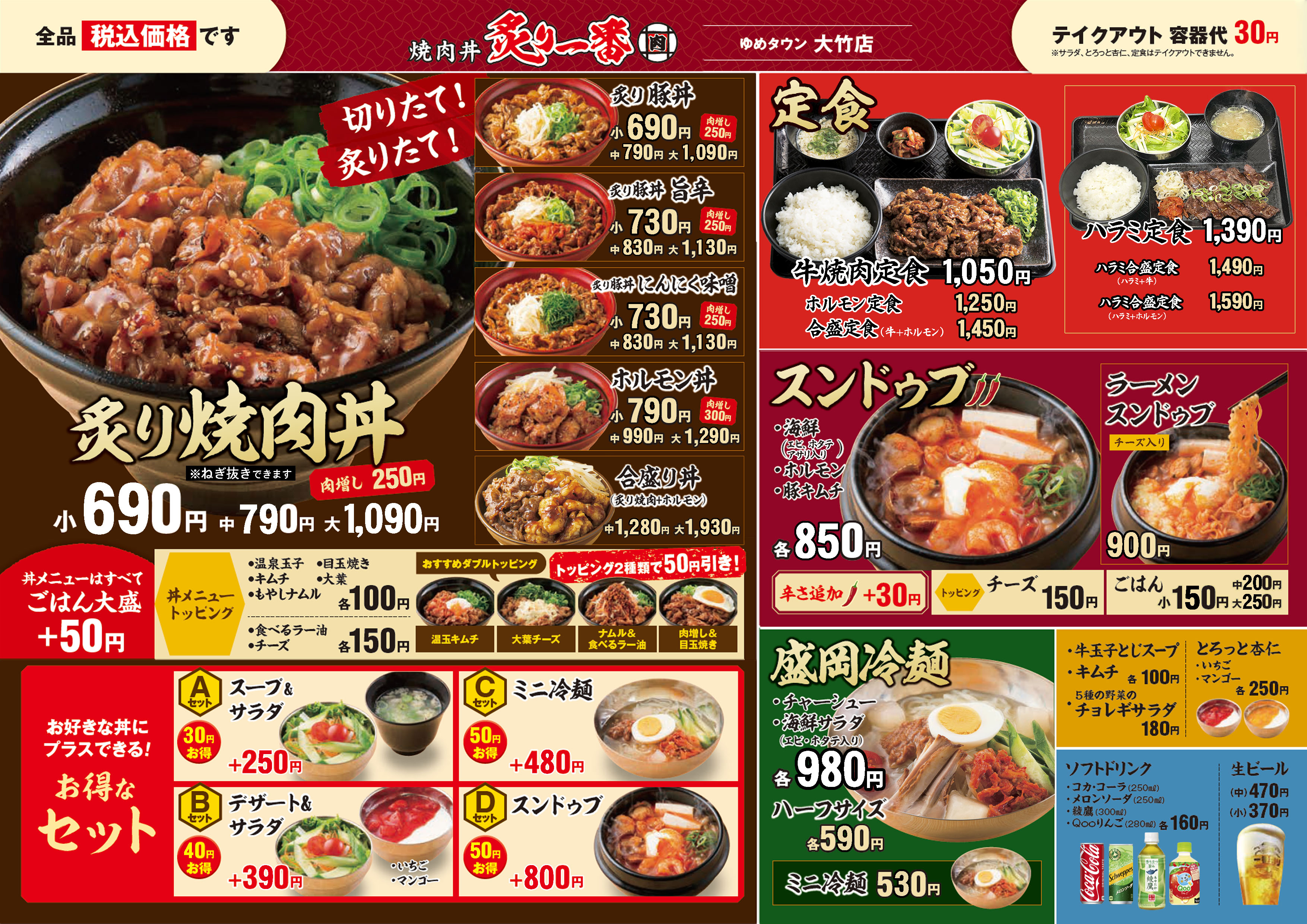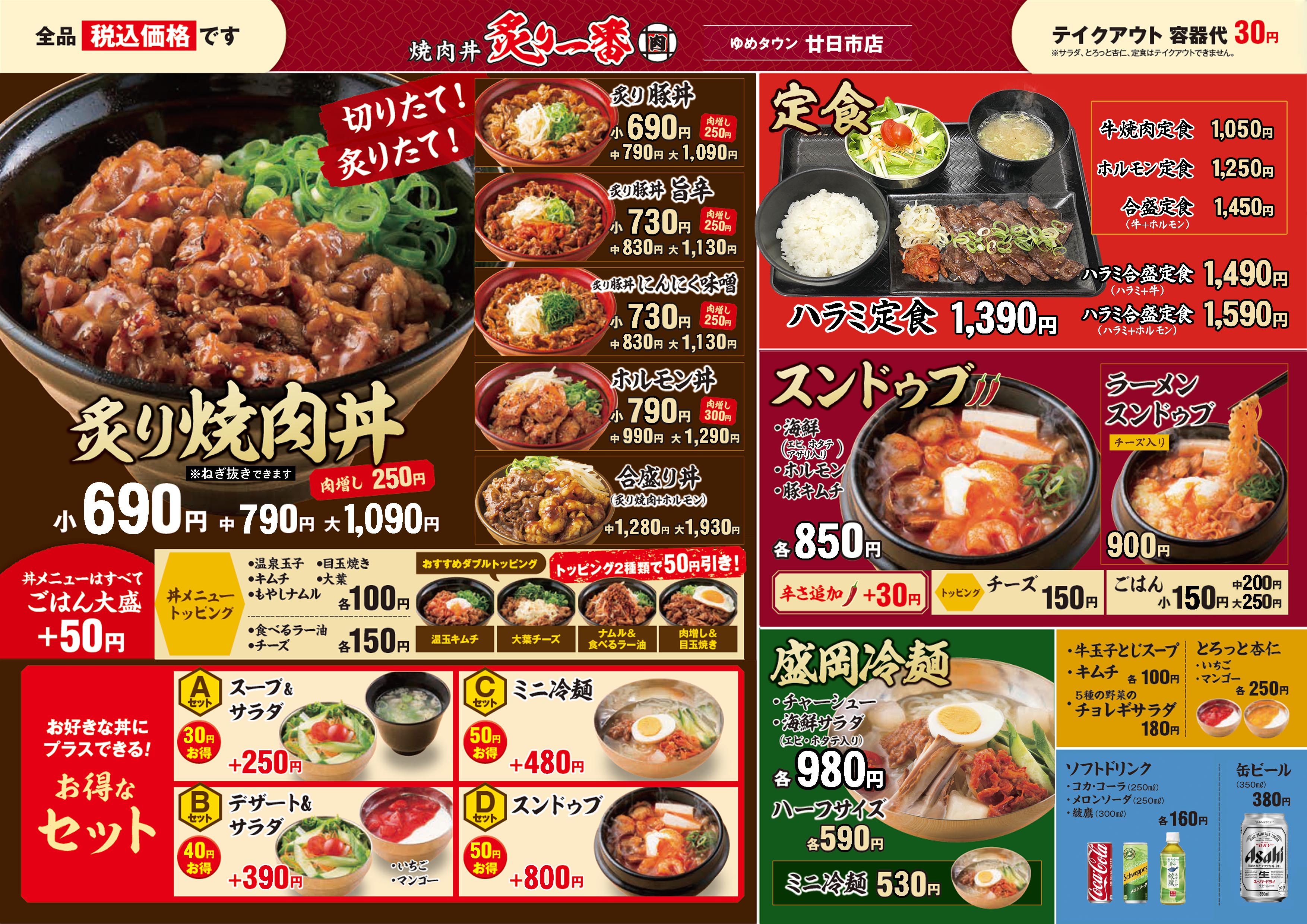 たれは、レモン、洋なし、オレンジ、パナップルの入ったフルーティーなオリジナルブレンド。ご家庭では再現できない火力で高温・短時間炙ることで、柔らかく香ばしく仕上げます。切りたて・炙りたての焼肉丼をご賞味ください!